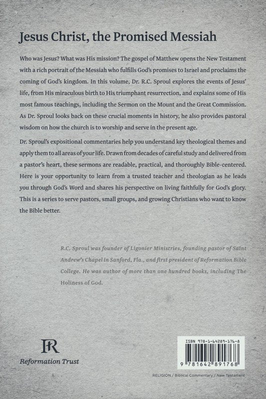 Who was Jesus? What was His mission? The gospel of Matthew opens the New Testament with a rich portrait of the Messiah who fulfills God's promises to Israel and proclaims the coming of God's kingdom. In this volume, Dr. R.C. Sproul explores the events of Jesus' life, from His miraculous birth to His triumphant resurrection, and explains some of His most famous teachings, including the Sermon on the Mount and the Great Commission. As Dr. Sproul looks back on these crucial moments in history, he also provides pastoral wisdom on how the church is to worship and serve in the present age.